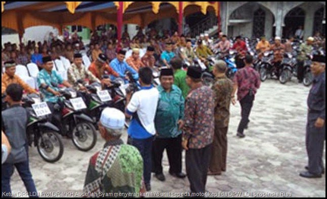 DPW LDII Riau mendapatkan sebanyak 176 unit sepeda motor merk Revo, plus 1 unit mobil Panther dari DPP LDII. Hal itu disampaikan Ketua DPP LDII, Prof DR Ir KH Abdullah Syam, di depan lima ratus jamaah pada acara silaturahim Dewan Pimpinan Wilayah (DPW) LDII Riau, Jalan Setia Tangkerang Utara, Kamis (23/10).