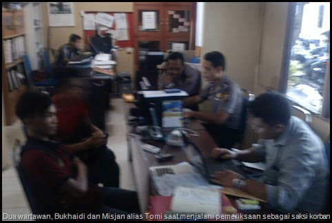 "Disitulah terjadi penganiayaan, karena kami tidak mau mengungkap nara sumber dugaan masalah raskin itu. Saat kami akan pulang, saya ditampar, ditarik sampai terlentang dan dipukuli Fadli bersama Kepala Dusun, Jaafar. Sedangkan Tomi di pengangi temannya Fadli yang juga hadir di lokasi," kata Bukhaidi.