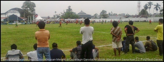 SigapNews.com | Inhu - Pertandingan antara kesebelasan Indragiri Hulu (Inhu) Vs Meranti berlangsung mulai pukul 16:00 Wib sampai dengan 17:45 Wib, berlangsung di lapangan sepak bola Garuda Air molek. Pertandingan berjalan sangat seru. Decak kagum penonton di tujukan tuk kedua kesebelasan. sampai turun minum, kedua kesebelasan hanya bermain kaca mata, 0-0.