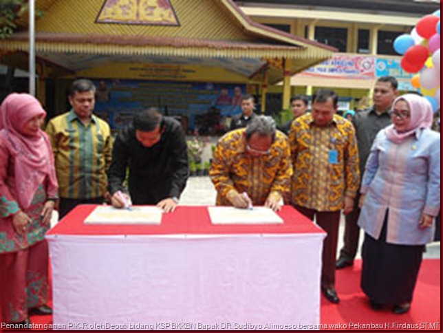 Sigapnews.com | Pekanbaru - Peresmian PIK-R untuk tingkat SMP ini merupakan yang ketiga di Kota Pekanbaru. sementara itu tujuan dibentuknya PIK-R pada tingkat SMP ini bertujuan agar para peserta didik imun terhadap tigahal yang menghawatirkan diantaranya, Sek bebas, Narkoba dan HIV, ini diutarakan Deputi bidang KSP BKKBN Bapak DR.Sudibyo Alimoeso,MA kepada sigapnews.com disela acara peresmian Kamis (9/10/2014).