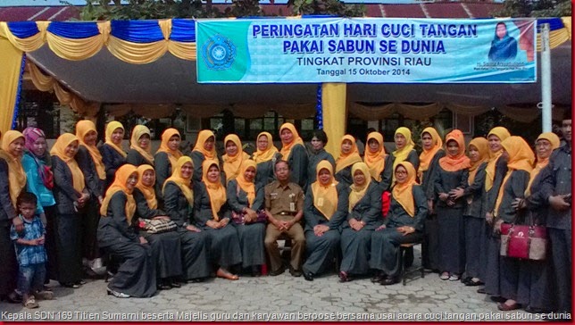 Kepala sekolah SDN 169 Pekanbaru Titien Sumarni, S.Pd sangat mengapresiakan acara peringatan cuci tangan ini di sekolah SDN 169. �Kita sangat bangga SDN 169 terpilih sebagai tempat peringatan cuci tangan pakai sabun se dunia tahun 2014. terimakasih untuk seluruh majelis guru, karyawan serta anak didik SN 169, yang berperan sukses dalam acara ini, ungkap Titien dengan bangga.