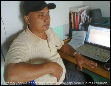 Atas tindakan arogan dan pengerusakan yang dilakukan oleh Ari tersebut, pada tanggal 11 Juni 2014, Suwarno membuat laporan resmi di Mapolres Pelalawan. Laporan diterima oleh Aipda Amrul Sani dengan STPL No. STPL/111/VI/2014/RIAU/RES PLWN. Sayangnya setelah membuat laporan itu, sudah hampir lima bulan lamanya, tapi belum ada kepastianya hukum. Persoalan itu sudah sering dipertanyakan kepada penyidik, Briptu Torkis Wesli Napitupulu mengaku ahwa berkas pemerikasaan telah selesai, tinggal menyerahkan P21 di Kejaksaan Negeri Pangkalan Kerinci. Tapi sebelum berkas itu di kirim, Suwarno diminta untuk menghadap Kasat Reskrim terlebih dahulu. Setelah Kasat Reskrim dijumpai oleh Suwarno didampingi media ini beberapa waktu, ternyata untuk menawarkan perdamaian dengan pihak keluarga Ari Budiman.
