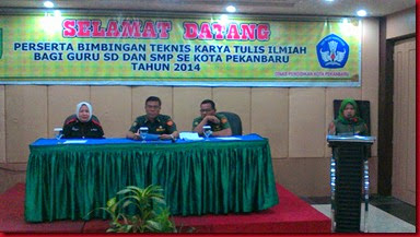 "Mengatakan bahwa setiap guru harus membuat karya tulis ilmiah bertujuan untuk peningkatan kinerjanya, serta kreatifitas guru tersebut juga menciptakan kerja yang sistimatis�, Ujar Kepala Dinas Pendidikan Kota Pekanbaru Prof.DR.Zulfadil,SE,MBA.