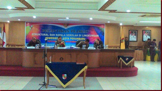 Sigapnews.com | Pekanbaru - Pelantikan Pejabat Struktural dan Kepala sekolah di lingkungan Pemerintahan kota Pekanbaru (Pemko), dilaksanakan di aula kantor Walikota Pekanbaru. Rabu ( 4/11 ). Pada cara pelantikan ini hadir Sekretaris kota pekanbaru, Asisten I, Asisten III , Kepala BKD Kota Pekanbaru, Kepala dinas pendidikan kota pekanbaru,para camat serta undangan lainnya.