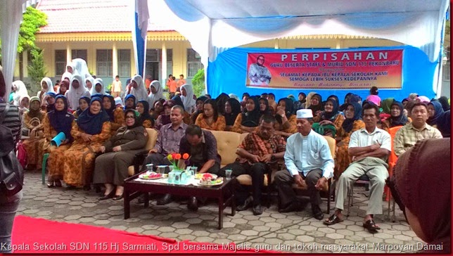 Sementara majelis guru melinangkan air mata melepaskan perpisahan kepala sekolah yang selalu memberikan meraka arahan selama 7 tahun memimpin di SDN 115, " Kami majelis guru merasa kehilangan kepimpinan yang sudah 7 tahun menjadi panutan. Tetapi kami yakin, berpisah bukan carai, dihati tetap satu tujuan. Doa kami ibu kepala sekolah yang kami banggakan bisa lebih sukses," tutur guru Afnimar dalam kata sambutan diiringi air mata membasahi pipinya.