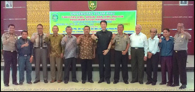 Sigapnews.com | Pekanbaru � Polisi Daerah (Polda) Riau bekerjasama dengan Polisi Jepang mengadakan seminar tentang perpolisian yang diselengarakan oleh Universitas Islam Riau (UIR) Fakultas Ilmu Sosial dan Politik Program Studi Kriminologi, Kamis (13/11/2014)