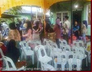 Seperti pelaksanaan reses anggota DPRD Hafizan Abbas yang digelar di salah satu rumah pemuka masyarakat di jalan Rajawali kelurahan Selatpanjang timur pada senin (04/11) sore dan dihadiri sedikitnya oleh seratus warga setempat,pertemuan yang digelar secara sedarhana dan penuh makna itu berjalan dengan baik dan terbilang sukses meskipun selama pertemuan diguyur hujan.