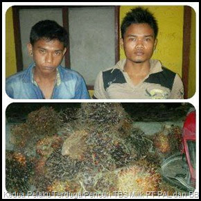 Sigapnews.com | Inhu - Apes betul nasip dua orang warga Perum Karyawan Div 38 PT Panca Agro Lestari (PAL). Desa Penyaguan, Kecamatan Batang Gansal, Kabupaten Indragiri Hulu (Inhu) ini. Pasalnya warga yang bernama Rispandi Agung Sedayu (23) dan Feriansyah (21), tertangkap tangan oleh Security sedang melakukan tindak pidana pencurian Tandan Buah Sawit (TBS).