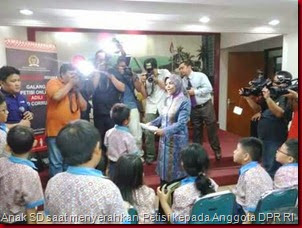 "Tidak semua anggota DPR tidak baik. Kalau ada satu anggota DPR tidak baik, bukan berarti semua tidak baik," ujar Nurhayati kepada anak-anak SD. (Humas Mabes polri)