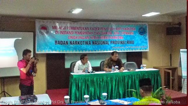 Kabid Pencegahan BNNP Riau Ir.Poltak Tobing,MSi mengatakan, �Kita ada pengkaderan dilingkungan baik di tingkat pemerintah dan swasta. Gunanya adalah bentuk Tupoksi kita untuk menjangkau pengkaderan penyuluh anti narkoba, karena narkoba adalah musuh kita semua. Pengkaderan ini selanjutnya perpanjangan tangan dari BNNP Riau�, ujar Ir Poltak Tobing.