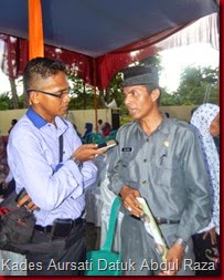 Kepala Desa Aursati Kecamatan Tambang Datu Abdul Raza' mengatakan kepada awak media sigapnews.com Rabu (17/12/2014) menuturkan," Terimakasih terhadap Bupati Kampar Bapak Jefry Noer yang telah melakukan peresmian langsung terhadap pembangunan Kantor Desa Aursati, dan secara langsung juga melakukan peresmian terhadap pelaksanaan pengobatan gratis pasca banjir serta memberikan berbagai bantuan terhadap masyarakat Aursati pada Khususnya yang di lakukan sejak pukul 13.00 Wib siang tadi," ujarnya