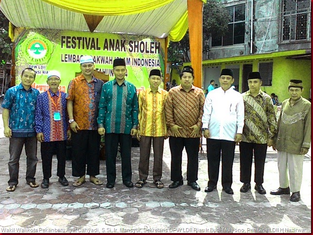 Ir. Budi Mulyono Sekretaris DPW LDII Provinsi Riau menyamapaikan rasa rimakasih dan sykurnya. �Kami mensyukuri serta mengucapkan terima kasih kepada pejabat pejabat yang bisa hadir pada acara Festival Anak Sholeh ini menunjukkan bahwa eksis dari organisasi LDII bukanlah organisasi masyarakat yang eksklusif tetapi organisasi kita yang mewadahi kepada organisasi masyarakat terutama umat muslim. Kita agenda kan pada Festival kali ini merupakan ajang untuk penyaringan peserta pada perlombaan tentunya lebih berprestasi , dan lebih kita tingkatkan dimasa akan datang, peserta festival anak sholeh berjumlah 180 anak dari 7 jenis perlombaan yang kita gelar pada tahun 2014,� ungkap Ir. Budi Mulyono. Sekretaris DPW LDII Provinsi Riau.