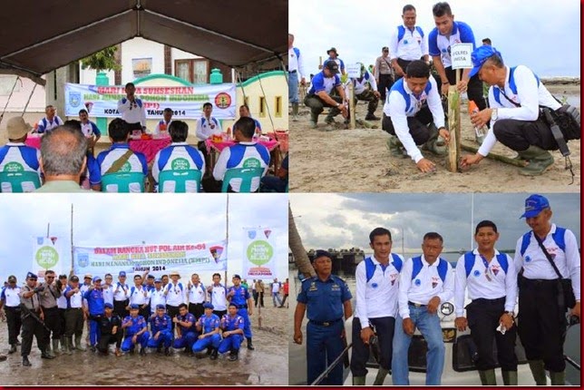 Sigapnews.com | Langsa � Dalam rangka Hari ulang Tahun (HUT) Kepolisian Perairan dan Kepolisian Udara (Polairud), Selasa 16 Desember 2014, di Desa Telaga Tujuh Kec. Langsa Baro Kota Langsa Kapolres Langsa AKBP Hariadi, SH, SIK di Dampingi Wakapolres Langsa KOMPOL Hadi Saepul Rahman, SIK dan Muspida Kota Langsa, dan Masyarakat Desa Telaga Tujuh Melaksankan Acara Penanaman 5000 pohon mangrove dalam rangka memperingati Hari Ulang Tahun ke 64 Kepolisian Perairan dan Kepolisian Udara. (Humas Mabes Polri)
