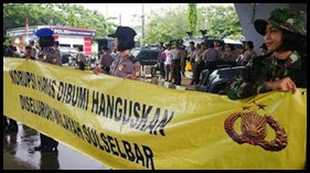 Aksi petugas berseragam coklat dan loreng ini mengundang perhatian pengendara yang melintas. Polwan dan Kowat cantik ini melakukan aksi damai dengan membentangkan spanduk bertuliskan mendukung pemberantasan korupsi, yang dipantau langsung oleh Kapolda Sulsel Irjen Pol Anton Setiadji.