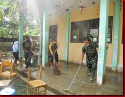 Sekitar 10 personil dari Senkom Mitra Polri Kab. Aceh Utara dan 10 personil dari koramil 20 Cot Giek turut ambil bagian dalam pembersihan sekolah tersebut. Berkat kerjasama yang solid tidak kurang dari 3 jam sekolah sudah selesai dibersihkan.