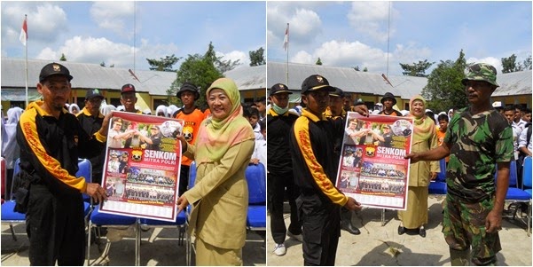 Setelah usai dilakukan pembersihan jajaran Senkom memberikan Poster/ kelender 2015 kepada kepala Sekolah dan Danramil 20 Cotgirek serta berfoto bersama dengan para murid dan guru. [rd]
