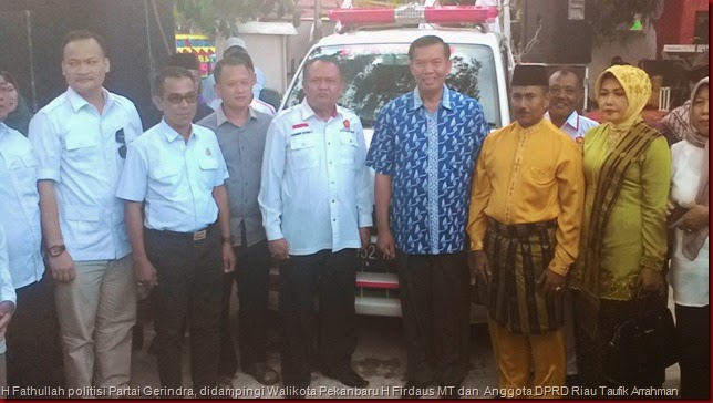 Selain hiburan rakyat pada kesempatan itu diberikan 1 unit ambulance untuk warga Kecamatan Limapuluh Pekanbaru.Ini semua dilakukan H.Fathullah untuk menepati janji beliau sewaktu pemilihan legislatif tahun lalu. Hal ini hendaknya dapat dicontoh oleh anggota partai gerindra dan anggota DPRD yang lainnya.